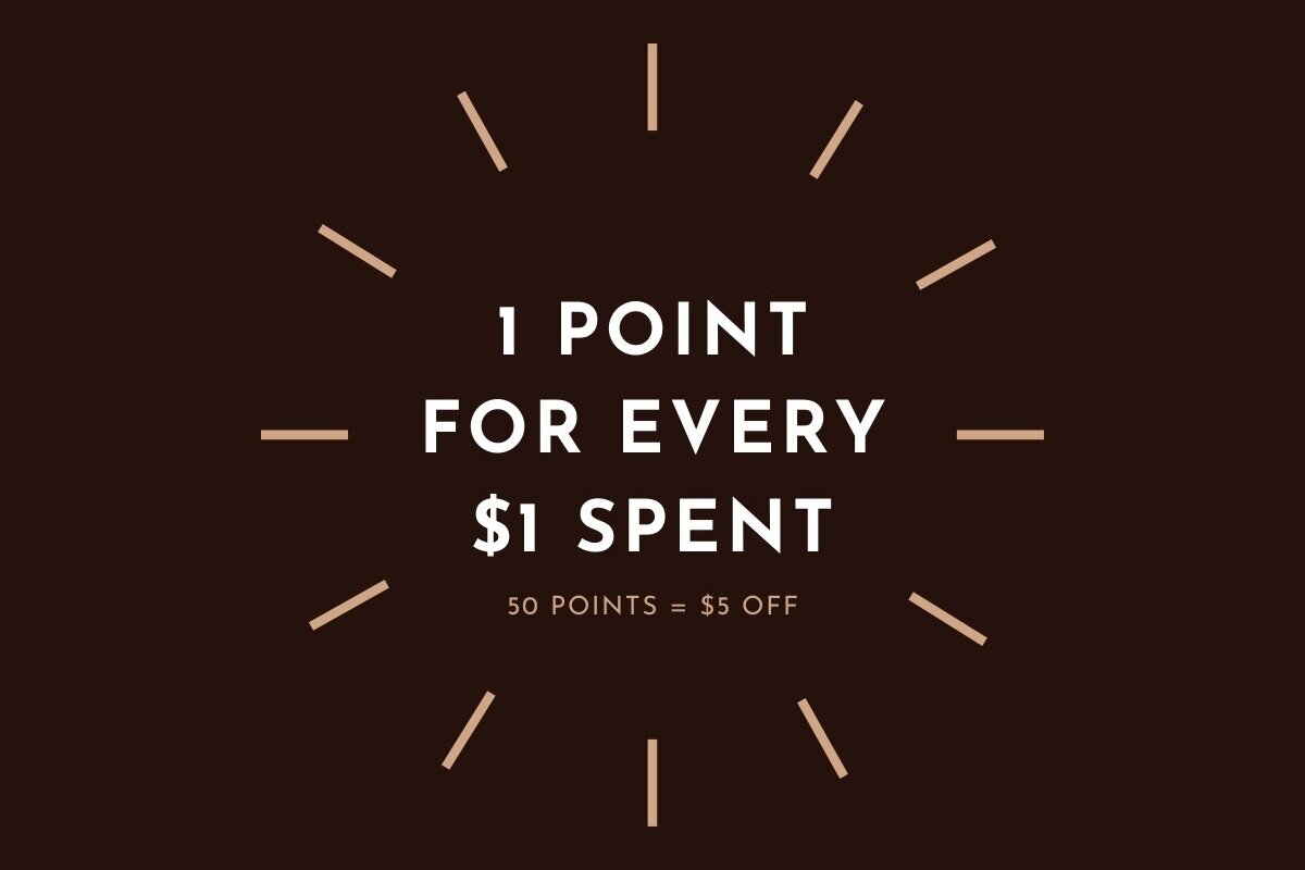 as a member of bangbop loyalty program, you will earn 1 point for every $1 you spend and receive a $5 discount for every 50 points you redeem (10% off).